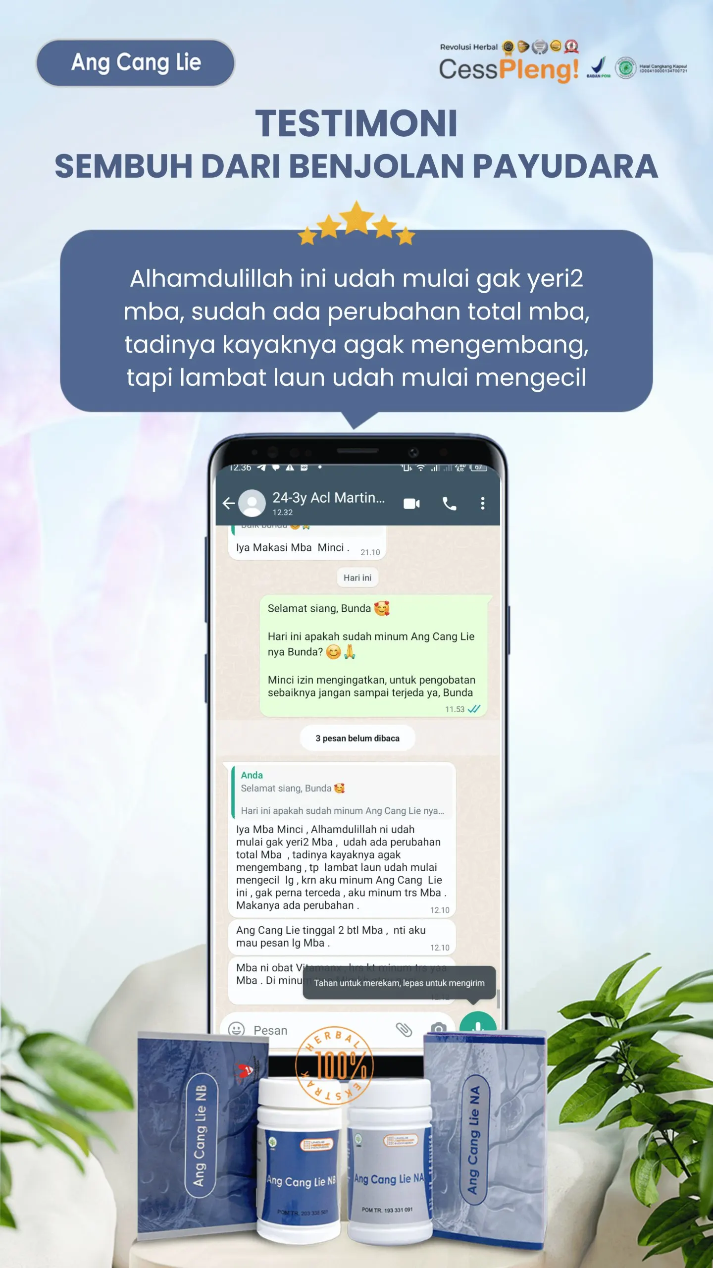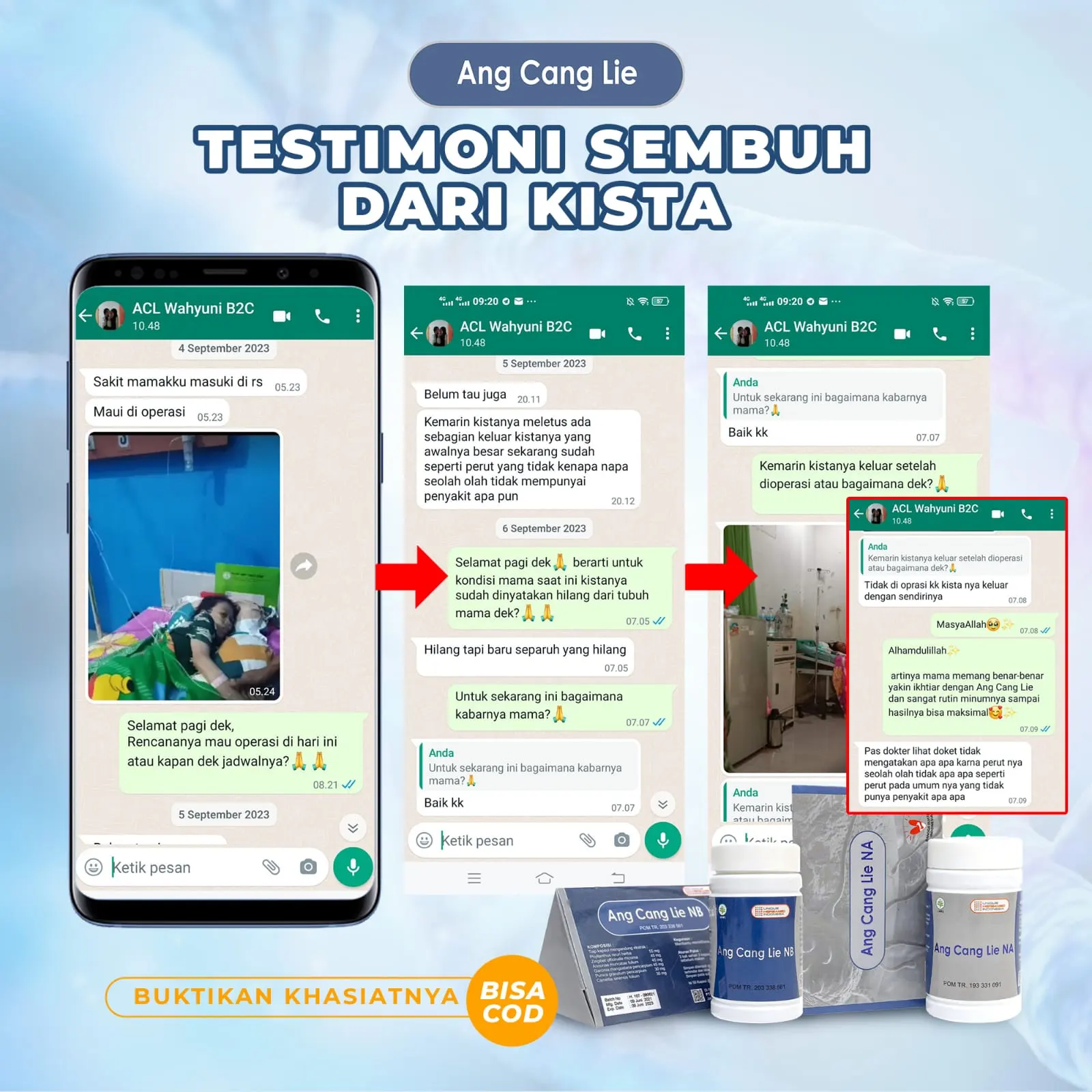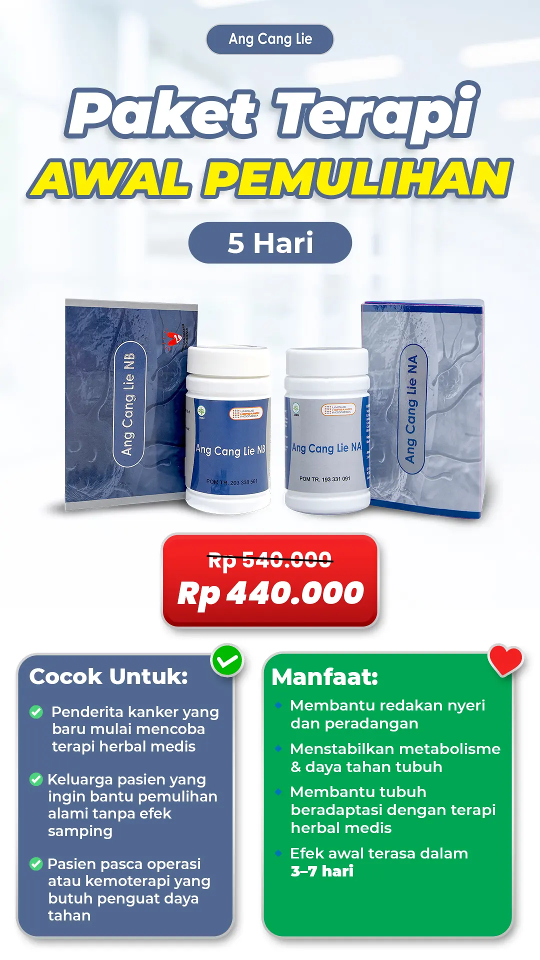 Dari pencarian itu, saya kenal Ang Cang Lie. Yang membuat saya setia di produk ini bukan janji instan, tapi cara kerjanya masuk akal. Ang Cang Lie bekerja dengan mekanisme antiangiogenesis, membantu mengganggu suplai nutrisi dan oksigen yang dibutuhkan sel abnormal untuk bertahan. Ketika suplai terganggu, sel abnormal melemah dan tidak mudah berkembang, sementara tubuh dibantu untuk memperkuat daya tahan dan memulihkan kondisi secara bertahap. Ang Cang Lie diformulasikan dari ekstrak herbal terstandar dan tersedia dalam dua varian yang saling melengkapi.
